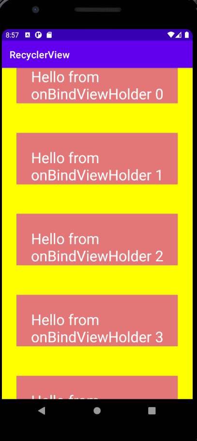 holder.view.findViewById<TextView>(R.id.name_text_view).text = "Hello from onBindViewHolder $position"
