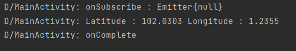 Log.d(TAG, "Latitude : 102.0303 Longitude : 1.2355")